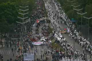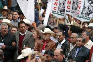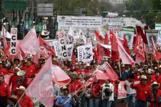 MÉXICO, D.F., 30ENERO2009.- Dirigentes de varias organizaciones campesinas y sindicales encabezadas por Cruz López de la Confederación Nacional Campesina (CNC) marcharon desde El Ángel hacia el Zócalo como parte del Movimiento Nacional por la Soberanía Alimentaria y Energética para exigir un cambio a la política económica y social, un alto a los despidos y a la caída de los salarios y para exigir el congelamiento del precio del diesel. FOTO: RODOLFO ANGULO/CUARTOSCURO.COM