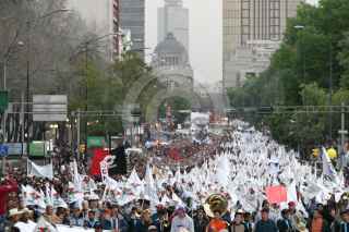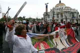 MÉXICO, D.F., 30ENERO2009.- Miles de personas marcharon desde la glorieta de El Ángel hacia el Zócalo como parte del Movimiento Nacional por la Soberanía Alimentaria y Energética que fue integrada por campesinos e integrantes de diversas organizaciones sociales y sindicales para exigir un cambio a la política económica y social, un alto a los despidos y a la caída de los salarios y para exigir el congelamiento del precio del diesel. FOTO: RODOLFO ANGULO/CUARTOSCURO.COM