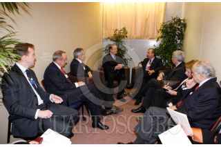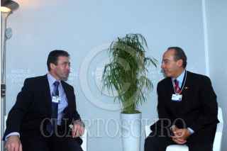 DAVOS, SUIZA, 31ENERO2009.- Felipe Calderón Hinojosa, presidente de México, continua con su gira de trabajo en el continente europeo, el cual se reunió con especialistas en el tema del cambio climático, en el marco del Foro Económico Mundial 2008, que tuvo lugar en el Centro de Congresos de esta ciudad. FOTO: ARIEL GUTIERREZ/CUARTOSCURO.COM