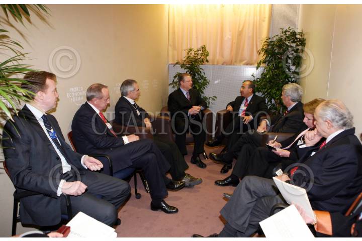 DAVOS, SUIZA, 31ENERO2009.- Felipe Calderón Hinojosa, presidente de México, continua con su gira de trabajo en el continente europeo, el cual se reunió con especialistas en el tema del cambio climático, en el marco del Foro Económico Mundial 2008, que tuvo lugar en el Centro de Congresos de esta ciudad. FOTO: ARIEL GUTIERREZ/CUARTOSCURO.COM