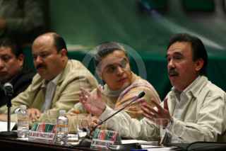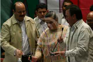 MÉXICO, D.F., 31ENERO2009.- Cesar Duarte Jáquez, Presidente de la Mesa Directiva de la Cámara de Diputados; Beatriz Paredes Rangel presidenta nacional del PRI y Emilio Gamboa Patrón, coordinador de los diputados priistas al termino de la clausura de la XII Reunión Plenaria del grupo parlamentario del PRI de la LX Legislatura de la Cámara de Diputados que se celebro en un hotel del Centro Histórico. FOTO: RODOLFO ANGULO/CUARTOSCURO.COM