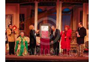 MÉXICO, D.F., 31ENERO2009.- Los integrantes del elenco de la obra de teatro Adorables Enemigas, Carlos Ignacio, Norma Lazareno y Silvia Pinal, develaron la placa conmemorativa por 300 representaciones ayer por la noche en el teatro Diego Rivera. Los padrinos del evento fueron la primera actriz, Carmen Montejo y Joaquín Cordero. FOTO: CUARTOSCURO.COM