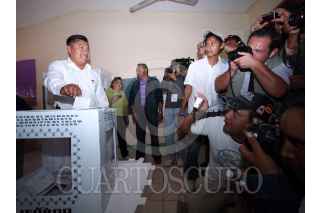 TULUM, QUINTANA ROO, 01FEB 2009.- Marciano Dzul candidato del PRI a la presidencia municipal de Tulum, emitio su voto esta mañana, durante la jornada extraordinaria de elecciones en el estado. FOTO: ELIZABETH RUIZ/CUARTOSCURO.COM