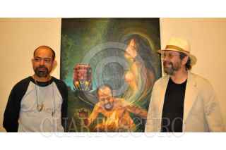 CHAPALA, JALISCO 01 FEBRERO 2009.- Se inauguró el dia de ayer la exposición pictorica del artista autodidacta Rodolfo Perez Garcia Lohbo, en el Centro Cultural Gonzalez Gallo de Chapala, en la imagen posa junto con Francisco Barreda, director de Artes Visuales del gobierno de Jalisco. FOTO: MARIA DI PAOLA BLUM/CUARTOSCURO.COM