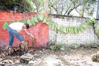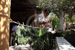 TENOSIQUE, TABASCO, 01FEBRERO2009.- El "Pocho" es un personaje místico que lucha entre el bien y mal, y en este domingo de carnaval al cual se le domina el carnaval más raro del mundo, este personaje sale a la calle con la intención de hacer el mal. En la gráfica se puede apreciar el proceso para disfrasarje de este personaje. FOTO: MARCO POLO GUZMAN/CUARTOSCURO.COM