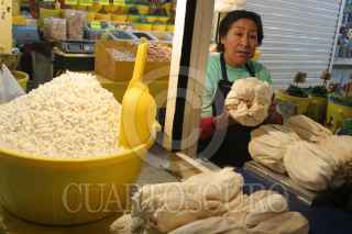 MÉXICO, D.F., 01FEBRERO2009.- La venta de harina y hojas de maíz para la preparación de tamales es muy solicitada por los capitalinos el día de hoy, ya que mañana se festeja la Candelaria y todos aquellos que sacaron "muñequito" en la rosca de reyes tendrán que pagar con tamales y atole. El mercado de Jamaica es una buena opción para conseguir los ingredientes a muy buen precio. FOTO: RICARDO CASTELAN/CUARTOSCURO.COM