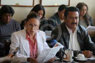 MÉXICO, D.F., 02FEBRERO2009.- Alina Vazquez Salas integrante de la Unión de Pueblos Originarios, durante conferencia de prensa realizada en un hotel del Centri Historico, donde llamo a la población en general a unirse en contra de la incansable ambición del gobierno del Distrito Federal encabezado por Marcelo Ebrard Casaubon, quien con los proyectos de la linea 12 del metro pretende el despojo de patrimonios y recursos naturales que pertenecen a los pueblos originarios de la México, así lo aseguro el vocero de este movimiento. FOTO: RICARDO CASTELAN/CUARTOSCURO.COM