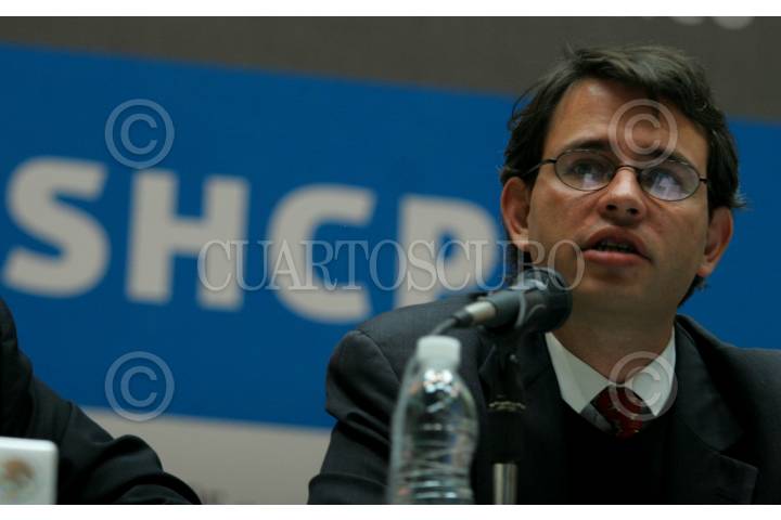 MÉXICO, D.F., 03FEBRERO2009.- Juan Manuel Perez Porrua, jefe de la unidad política de ingresos, durante conferencia de prensa que se realizo en Palacio Nacional, donde dio a conocer el informe sobre economía y finanzas publicas del cuarto trimestre 2008. FOTO: RICARDO CASTELAN/CUARTOSCURO.COM