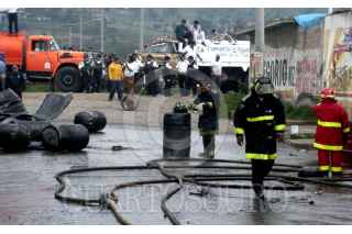 En la calle Flores Magón y Francisco Villa, en San Vicente Chicoloapan, Estado de México, exploto un local clandestino, por la mala instalación de una manguera que estaba conectada a un tanque. El saldo fue la explosión de cuatro tambos de aceite y la lesión de un bombero. FOTO: Gilberto Molina/CUARTOSCURO.COM