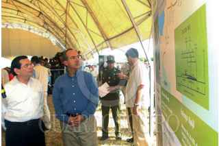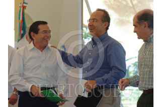 ESCARCEGA, CAMPECHE, 03FEBRERO2009.- Jorge Carlos Hurtado Valdez, Gobernador del estado junto a Felipe Calderón, Presidente de México y Luis Tellez, Secretario de Comunicaciones y Transporte durante la inauguración, ampliación y modernización de 92 kilómetros de la carretera Villahermosa-Escarcega-Xpujil. FOTO: ALFREDO GUERRERO/CUARTOSCURO.COM