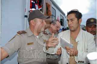 VILLAHERMOSA, TABASCO, 03FEBRERO2009.- Un chófer de taxis amarillos resulto positivo a drogas y alcohol cuando se realizaba un retén por partes de la autoridades de la Dirección Estatal de Caminos. El presunto infractor fue trasladado ante el agente del ministerio público, mientras que el medico legista presenta la muestra con la que se le aplico el examen deantidoping. FOTO: MARCO POLO GUZMÁN HERNÁNDEZ/CUARTOSCURO.COM