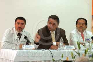 MÉXICO, D.F., 04FEBRERO2009.- El doctor, Eduardo Cervera, el licenciado Ricardo Alvares Tostao y el Doctor Alejandro Mohar durante la ceremonia del acto conmemorativo al día Internacional contra el cancer FOTO: EDUARDO MORALES/CUARTOSCURO.COM