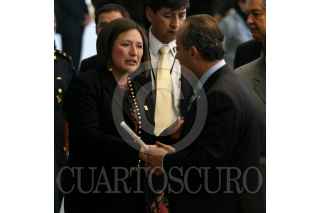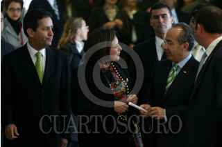 MÉXICO, D.F., 04FEBRERO2009.- Xóchitl Gálvez Ruiz, ex Comisionada Nacional para el Desarrollo de los Pueblos Indígenas conversa con el presidente Felipe Calderón al termino del recorrido por el Centro de Excelencia American Express que se ubica en Tecnopaque. FOTO: RODOLFO ANGULO/CUARTOSCURO.COM