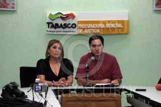 VILLAHERMOSA, TABASCO, 04FEBRERO2009.- Los voceros de la Procuraduría General de Justicia; Silvia Gil Cuellar y Fernando Valenzuela Pernas dieron a conocer en rueda de prensa efectuada en la sala de uso múltiples de la PGJ que fueron aprehendidos dos agentes de transito municipal de Balancan que participaron en el secuestro del ex candidato del PAN a la presidencia municipal de Balancan y hoy occiso Cenobio Argauiz Zurita. FOTO. MARCO POLO GUZMÁN HERNÁNDEZ/CUARTOSCURO.COM