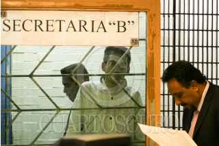MÉXICO D.F., 04FEBRERO2009.- Miguel Ángel Herrera García, acusado de robo y de asesinar al científico francés Christopher Augur el pasado 27 de Enero en las inmediaciones del Aeropuerto de la Ciudad de México, se presento a la rejilla de practicas del Juzgado 11 de lo Penal del Reclusorio Norte, donde se le dicto auto de formal prisión. FOTO: GUILLERMO PEREA/CUARTOSCURO.COM