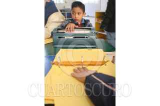 MÉXICO, D.F., 04FEBRERO2009.- Alumnos de el Centro de Rehabilitación para ciegos y débiles visuales, ya no tendrá donde aprender a escribir ni leer braille ya que las instalaciones de este centro sera cerrado por falta de recursos para mantener esta escuela para ciegos, hoy por la mañana padres de familia que tienen a sus hijos en esta institución acudieron al lugar para impedir el cierre de esta institución. FOTO: RICARDO CASTELAN/CUARTOSCURO.COM