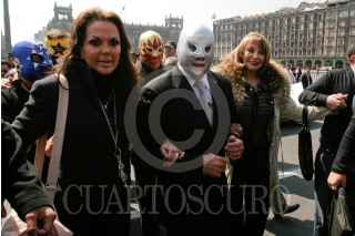 MÉXICO, D.F., 05FEBRERO20009.- El Hijo del Santo, cuyo padre fue el Santo "El Enmascarado de Plata", asistió a la misa en honor a su padre quien cumple 25 años de su muerte, el servicio religiosos se realizó en la Catedral Metropolitana, lo acompañaron amigos de la familia, seguidores y luchadores. FOTO: IVÁN MENDEZ/CUARTOSCURO.COM