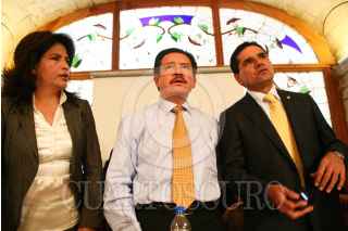 MORELIA, MICHOACÁN, 06FEBRERO2009.- Los Senadores del PRD, Yeidckol Polevnsky, Carlos Navarrete y Silvano Aureoles presentaron las prioridades legislativas ante la crisis económica. FOTO: CUARTOSCURO.COM