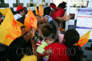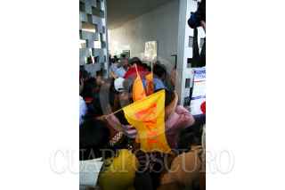 VILLAHERMOSA, TABASCO, 06FEBRERO2009.- Manifestantes que se plantaron en puertas de Palacio Municipal que no fueron atendidos por las autoridades entran a empujones y golpes, enfrentándose con miembros de logística y exigir la regularización de sus predios en las colonias de Río Nuevo y Buena Vista primera sección en donde habitan en promedio cuatrocientas familias de bajo recursos. FOTO: MARCO POLO GUZMÁN HERNÁNDEZ/CUARTOSCURO.COM