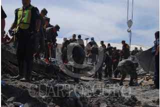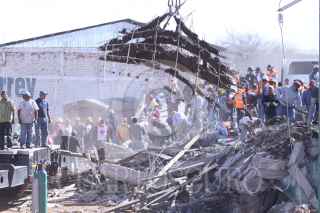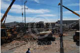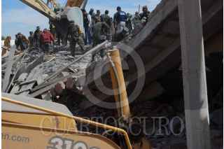 GUADALUPE, ZACATECAS, 06FEBRERO2009.- Aproximadamente a las once de la mañana se derrumbó un edificio de tres pisos que estaba en construcción en el libramiento Transito Pesado ubicado en el kilómetro 45 México-Ciudad Juárez frente al edificio de el periódico la Jornada Zacatecas. Al lugar acudieron elementos del bomberos y protección civil, así como elementos de la policía estatal y el ejercito mexicano. Hasta el momento se han recatados a dos personas lesionadas y dos muertos y siguen las acciones para rescatar a mas trabajadores que se encontraban laborando cuando sucedió el lamentable percance. FOTO: OSCAR BAEZ/CUARTOSCURO.COM