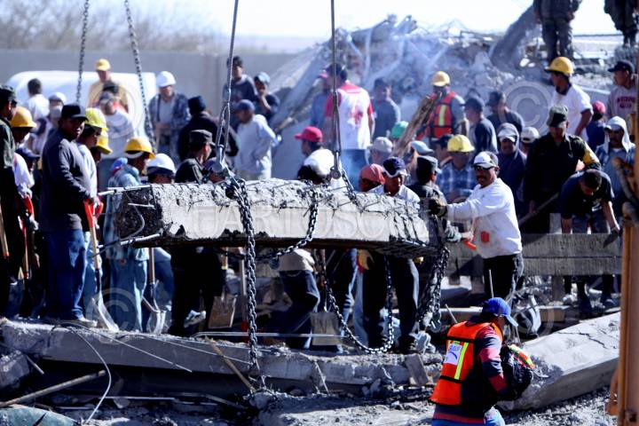 GUADALUPE, ZACATECAS, 06FEBRERO2009.- Aproximadamente a las once de la mañana se derrumbó un edificio de tres pisos que estaba en construcción en el libramiento Transito Pesado ubicado en el kilómetro 45 México-Ciudad Juárez frente al edificio de el periódico la Jornada Zacatecas. Al lugar acudieron elementos del bomberos y protección civil, así como elementos de la policía estatal y el ejercito mexicano. Hasta el momento se han recatados a dos personas lesionadas y dos muertos y siguen las acciones para rescatar a mas trabajadores que se encontraban laborando cuando sucedió el lamentable percance. FOTO: OSCAR BAEZ/CUARTOSCURO.COM