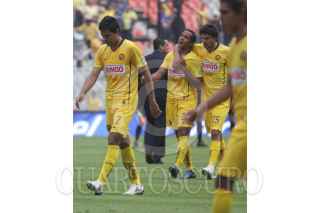 MÉXICO, D.F., 08FEBRERO2009.- Integrantes del América dejan la cancha al ser vencidos por el Pacuca durante su encuentro de esta tarde al quedar un marcador final, 3-1, dentro de la fecha 4 del Torneo Clausura 2009 del futbol mexicano. FOTO: SÁSHENKA GUTIÉRREZ/CUARTOSCURO.COM