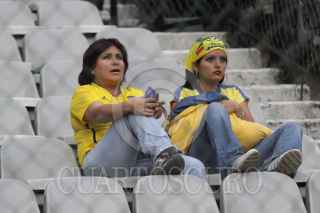 MÉXICO, D.F., 08FEBRERO2009.- Dos aficionadas americanistas, observan como su equipo abandona la cancha despúes de la derrota ante el Pachuca. FOTO: SÁSHENKA GUTIÉRREZ/CUARTOSCURO.COM
