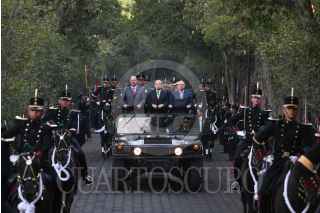 MÉXICO, D.F., 09FEBRERO2009.- Horacio Duarte, diputado del PRI, Felipe Calderon, Presidente de México y Guillermo Ortiz Ministro presidete de la Suprema Corte de Justicia durante la ceremonia conmemorativa del XCVI aniversario de la marcha de la Lealtad que tuvo lugar en el castillo de Chapultepec. FOTO: ARIEL GUTIERREZ/CUARTOSCURO.COM