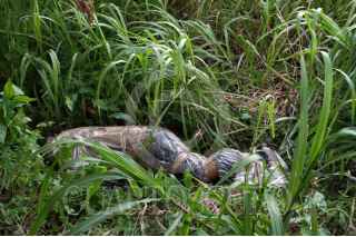 VILLAHERMOSA, TABASCO, 09ENERO2009.- El cuerpo sin vida de una persona del sexo masculino de identidad desconocida hasta el momento, fue encontrado envuelto en bolsas con ataduras en el cuerpo, el cadáver fué encontrado en el terreno baldío da frente a la finca que era propiedad del también ejecutado a mediados del 2006, Ponciano Vázquez Lagunas. FOTO: MARCO POLO GUZMÁN HERNÁANDEZ/CUARTOSCURO.COM