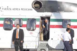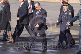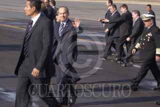 SANTA LUCÍA, EDO. DE MEX., 10FEBRERO2009.- Felipe Calderon Hinojosa, presidente de México a su llegada a la la base Aérea Militar de Santa Lucía, en donde encabezo la ceremonia conmemorativa del Día de la Fuerza Aérea Mexicana. FOTO: SÁSHENKA GUTIÉRREZ/CUARTOSCURO.COM