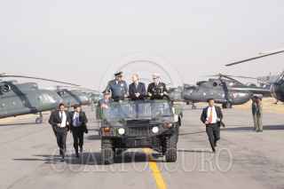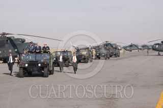 SANTA, LUCÍA ESTADO DE MÉXICO 10 FEBRERO2009.- Guillermo Galvan Galvan sSecretario de la Defensa Nacional, Calderon Hinojosa, presidente de México, Francisco Saynez Mendoza titular de la Secretaría de Marina a su llegada a la la base Aérea Militar de Santa Lucía, en donde el mandario encabezó la ceremonia conmemorativa del Día de la Fuerza Aérea Mexicana. FOTO: SÁSHENKA GUTIÉRREZ/CUARTOSCURO.COM