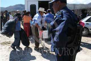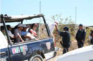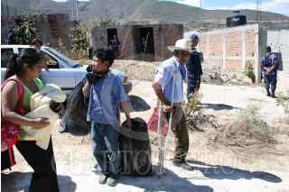 CHILPANCINGO, GUERRERO, 10FEBRERO2009.- Cerca de 30 minusválidos y niños con deficiencia mental pertenecientes a la organizacion "Digna Ochoa y Placido" fueron amedrentados por unos 20 policías municipales, en la zona sur de la capital del estado, cuando intentaban invadir unas casas en obra negra del fraccionamiento "Rene Juarez", propiedad del INVISUR. FOTO: OSCAR ALVARADO/CUARTOSCURO.COM