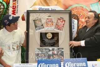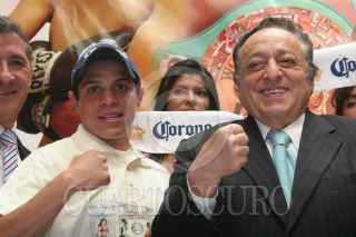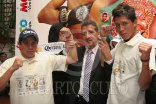 MÉXICO, D.F., 11FEBRERO2009.- Edgar Sosa campeón mundial minimosca y Jose Sulaiman presidente del Consejo Mundial de Boxeo, resivieron un certificado de excelencia de boxeo de gala por parte del Consejo Mundial de boxeo, por promover este deporte en el Distrito Federal, esto durante la presentacion de la función boxistica ¡HISTORIA EN VICTORIA! que se realizara en Ciudad Victoria, Tamaulipas el 4 de abril en el Centro de Espectáculos Recinto Ferial de Ciudad Victoria. FOTO: RICARDO CASTELAN/CUARTOSCURO.COM