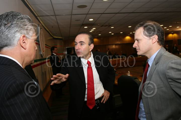 MÉXICO D.F., 11FEBRERO2009.- “Es exageradas las declaraciones del empresario Carlos Slim” menciono Alejandro Werner, subsecretario de Hacienda al reunirse con diputados integrantes de la Comisión de Hacienda de la Cámara de Diputados, es acompañado de Jorge Estefan Chidiac Charvel, diputado del PRI, y presidente de esta comisión junto con Antonio Soto Sánchez diputado del PRD. FOTO: GUILLERMO PEREA/CUARTOSCURO.COM