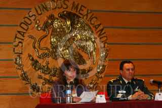 MÉXICO, D.F., 11FEBRERO2009.- Marisela Morales Ibáñez titular de la SIEDO, junto con Luis Arturo Oliver Cen, subjefe operativo del Estado Mayor de la Defensa Nacional, ofreció una conferencia de prensa para informar la detencion de integrantes de la organizacion "Cardenas Guillen" en cancún Quintana Roo. FOTO: SAÚL LÓPEZ/CUARTOSCURO.COM