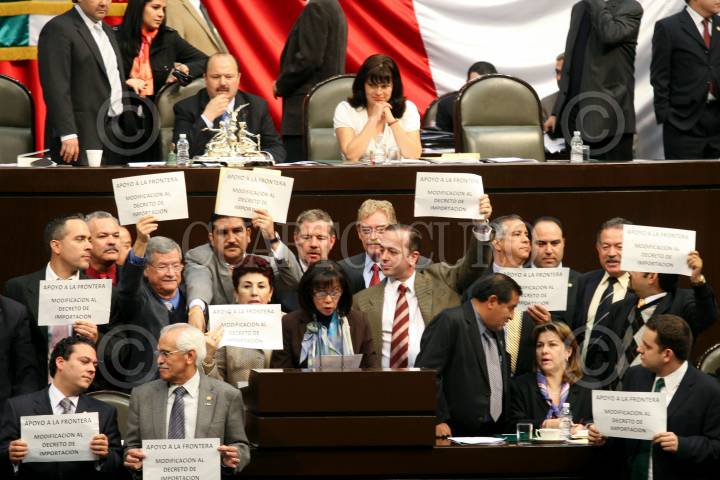 MÉXICO D.F., 12FEBRERO2009.- Los diputados del PRI, César Duarte Jáquez y Emilio Gamboa Patrón, levantan los brazos en forma de triunfo al candidato por la gobernatura de Nuevo León, Rodrigo Medina De la Cruz quien se reunio con diputados de este partido momentos antes de dar inicio a la sesión en la Cámara de Diputados. FOTO: GUILLERMO PEREA/CUARTOSCURO.COM