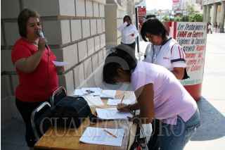 CHILPANCINGO, GUERRERO, 12FEBRERO2009.- Trabajadores del INAH-Guerrero realizaron una protesta afuera del Museo Regional, contra el proyecto de luz y sonido llamado "Resplandor Teotihuacano" que se pretende llevar a cabo en la zona arqueológica de Teotihuacan, con lo que se han presentado daños a las estructuras de las pirámides, y en general a la cultura de los mexicanos, destacaron. FOTO: OSCAR ALVARADO/CUARTOSCURO.COM
