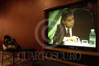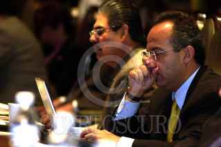 Felipe Calderón Hinojosa, coordinador de la fracción panista en la Cámara de Diputados, checa su información en su computadora portatil, durante la comparecencía de Luis Ernesto Derbez. FOTO: Oswaldo Ramírez/CUARTOSCURO.COM