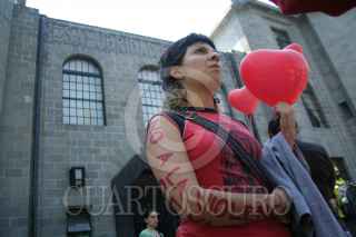 MÉXICO D.F., 13FEBRERO2009.- Miembros de Amnistía Internacional protestaron frente a las instalaciones de la Secretaría de Salud en demanda de no a la violencia de géneros. En el evento se regalaron condones y globos. FOTO: ENRIQUE ORDÓÑEZ/CUARTOSCURO.COM