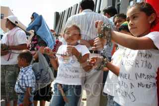 OAXACA, OAXACA 13FEBRERO2009.-En el marco del Día Internacional del Niño con Càncer, integrantes del Colectivo Huaxyacac se manifestaron en las oficinas centrales de la Secretaría de Salud de Oaxaca para exigir mejora de servicios en las comunidades indígenas donde las mujeres y niño mueren por enfermedades comunes. FOTO: MAX NÚÑEZ/CUARTOSCURO.COM