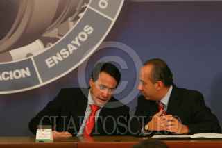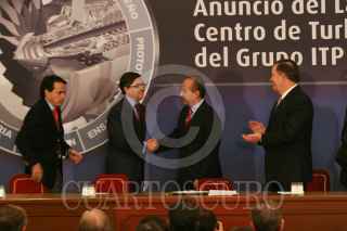 MÉXICO D.F., 13FEBRERO2009.- Felipe Calderón Hinojosa, Presidente de México, anuncio esta mañana el lanzamiento del Centro de Turbinas Aeronáuticas del Grupo ITP, que operara en el estado de Querétaro, dicho evento fue en las instalaciones de la Residencia Oficial de los Pinos. FOTO: GUILLERMO PEREA/CUARTOSCURO.COM