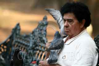 MÉXICO, D.F., 14FEBRERO2009.- Paseando por uno de los pocos pulmones con los que cuenta la capital, como el Bosque de Chapultepec quien no solo nos ofrece un ambiente agradable, sino también nos regala estampas como la de este hombre cuyo pasatiempo es alimentar a las palomas del lugar. FOTO: MOISÉS PABLO/CUARTOSCURO.COM