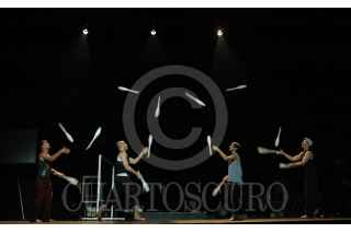 VERACRUZ, VERACRUZ, 14FEBRERO2009.- Por primera vez en esta ciudad se presentará el "Proyecto Fibonacci", un espectáculo que combina las artes de los profesionales del circo, la danza, el teatro, la música y el vídeo. Producto de residencias artísticas emprendidas desde 2007 por las compañías "Les 7 doigts de la main" y "ArtCirq", ambas de Canadá, y "Cirko De Mente", de México, el innovador espectáculo multidisciplinario estará este sábado y domingo en el Teatro Clavijero y después trasladarán su propuesta colectiva a el Teatro de la Ciudad Esperanza Iris de la Ciudad de México, del 20 al 22 de Febrero. FOTO: JOSÉ CANDELARIO/CUARTOSCURO.COM