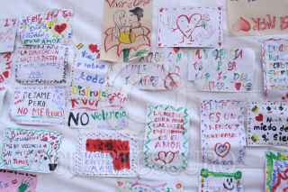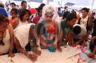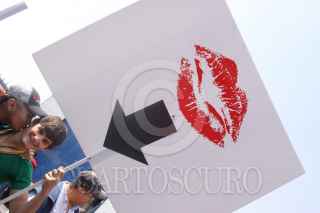 MÉXICO, D.F., 14FEBRERO2009.- En la plancha del zócalo capitalino se desarrollo la feria Amor es sin violencia "bésame mucho" para romper el récord Guiness de mayor numero de besos, la feria contó con diversas actividades como pintura, y registro civil, donde las parejas podían casarse de manera ficticia y a cambio recibian preservativos. FOTO:SÁSHENKA GUTIÉRREZ/CUARTOSCURO.COM