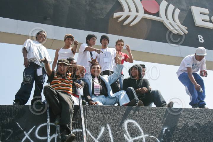 MÉXICO, D.F., 15FEBRERO2009.- El luchador Abismo Negro visitó el estacionamiento del Estadio Azteca, donde cientos de jóvenes participan en el Segundo Megaconcurso de Graffiti, organizado por autoridades del gobierno del Distrito Federal. FOTO: ISAAC ESQUIVEL/CUARTOSCURO.COM