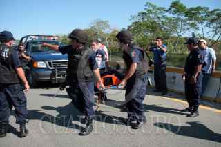 VILLAHERMOSA, TABASCO, 15FEBRERO2009.- Cuatro policías resultaron gravemente heridos cuando la unidad móvil de la Policía Estatal de Seguridad Pública en la que viajaban para realizar un operativo sufrió un percanse debido a que un ciudadano que conducía a exceso de velocidad sobre la carretera federal Villahermosa-Macuspana a la altura del ejido Coronel Traconis. FOTO: MARCO POLO GUZMÁN HERNÁNDEZ/CUARTOSCURO.COM