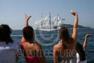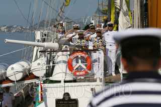 ACAPULCO, GUERRERO 15FEBRERO2009.- Esta mañana zarpó el buque escuela de la Armada de México “Cuauhtémoc” con 260 tripulantes abordo y 99 Guardiamarinas recientemente egresados de la heroica Escuela Naval Militar, para dar inicio al crucero de instrucción denominado “Japón 2009” que aproximadamente tendrá una duración de mas de 5 meses. FOTO: GUILLERMO PEREA/CUARTOSCURO.COM