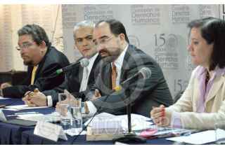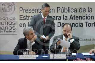 MÉXICO, D.F., 16FEBRERO2009.- Emilio Alvarez Icaza acompañado del procurador capitalino en la presentación pública de la ¨Politica, a trevés de la cual se implementara la estrategia para la atención de casos de tortura en los que se denuncia tortura en la Comisión de Derechos Humanos del D.F. FOTO: VICTORIA VALTIERRA/CUARTOSCURO.COM