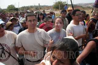 CUERNAVACA, MORELOS., 16FEBRERO2009.- Héctor y Antonio Cerezo, acusados de pertenecer a las Fuerzas Armadas Revolucionarias del Pueblo (FARP) y de ser los autores de la explosión de petardos en tres sucursales bancarias del Distrito Federal, salieron libres hoy al medio día del penal de Atlacholuaya en el estado de Morelos, después siete siete años. Decenas de estudiantes, familiares y activistas, de diversas partes de la República, esperaron mas de 5 horas afuera del penal su liberación de los hermanos. FOTO: LUIS GIRON/CUARTOSCURO.COM