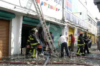 MÉXICO, D.F., 05FEBRERO2009.- Elementos de Bomberos de varias Delegaciones acudieron al apoyo para sofocar el incendio que se registro en un local con razón social Comercializadora de Plásticos S.A. de C.V. que se ubica en Avenida Fray Servando entre las calles de Circunvalación y Congreso de la Unión en la colonia Merced perímetro de la Delegación Venustiano Carranza. FOTO: JULIETA MORA/CUARTOSCURO.COM